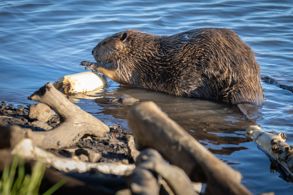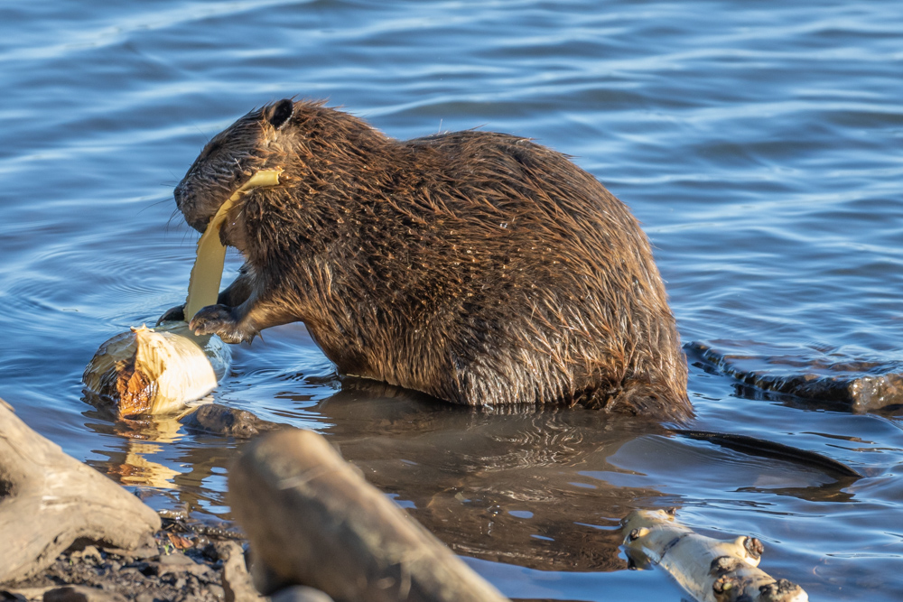 If you can find their home – a nest or den – you are much more likely to be able to camp out and wait for their arrival or departure. We were lucky enough to encounter a beaver den. Sometimes they are abandoned, but fresh cut trees will lead you to where you might find them.