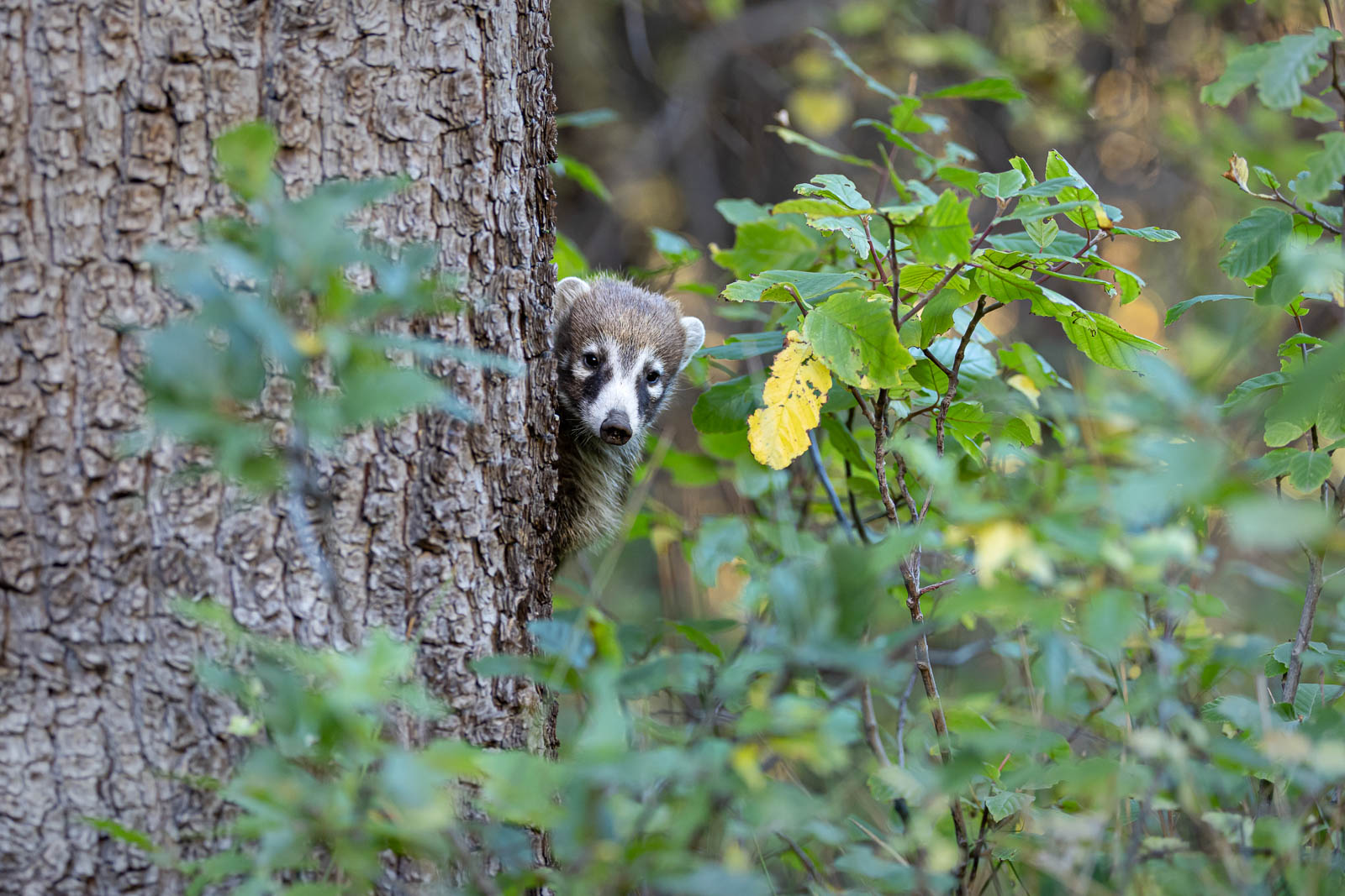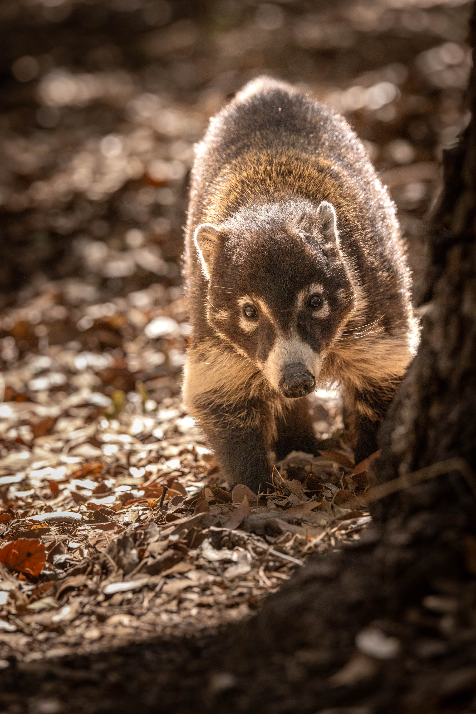 As with any nature, the more you pursue it, the more you learn. We discovered that the coati would come out foraging for nuts and grubs in the heavy fall leaves coating the ground.