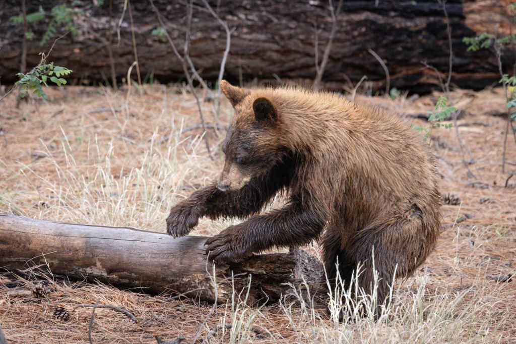 The bears forage for insects, berries, and acorns. We watched with fascination as this young brown-colored black bear overturned huge rocks with it’s massive paws, or rolled over logs, a mere mortal couldn’t budge looking for potential grubs underneath.