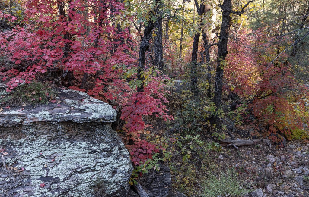 The late cold snap has brought vibrant color to our forests and trees. As time goes on, the leaves begin to change at lower and lower elevations. We covered the higher altitudes of Mogollon Rim and Green’s Peak around 7500′ (see pix here .. https://kritterspaw.com/2025/10/18/fall-colors-2/)