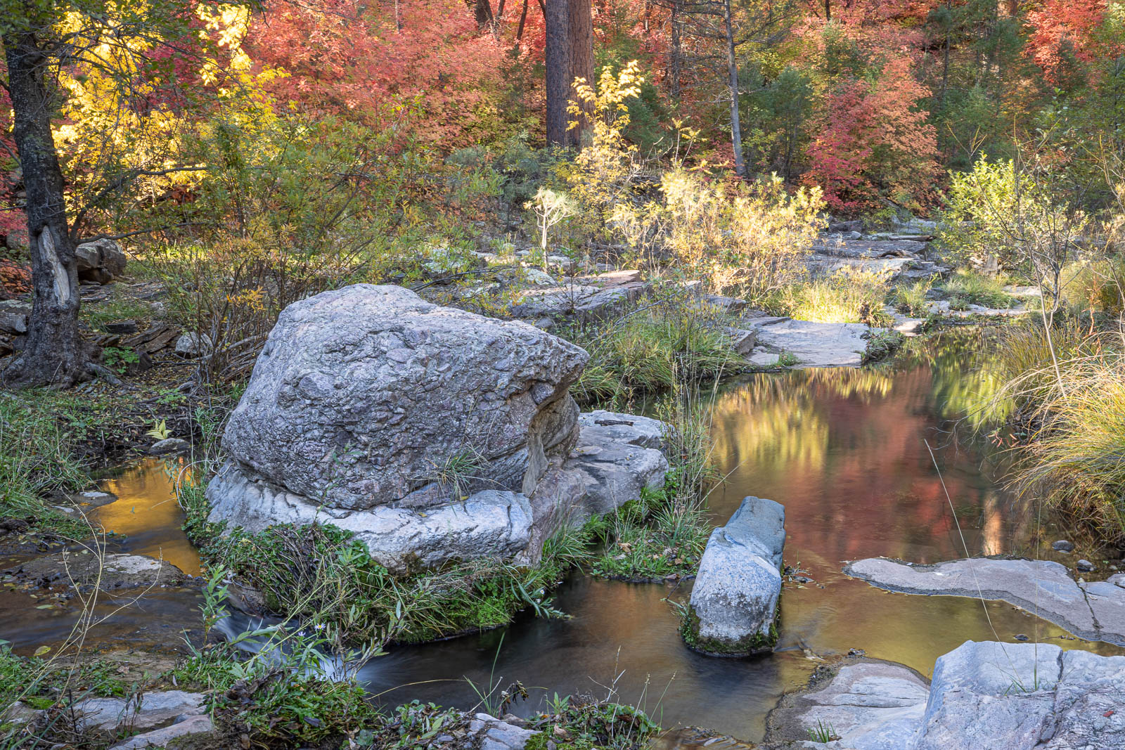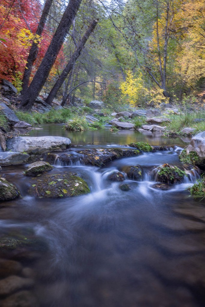 Creeks and streams litter our road maps with little blue lines scattered all over Arizona. The difficult part is finding actual water, which can prove to be a challenge. But we were up for the task and trekked deep into the back roads to find a special spot that yielded great color and reflections.