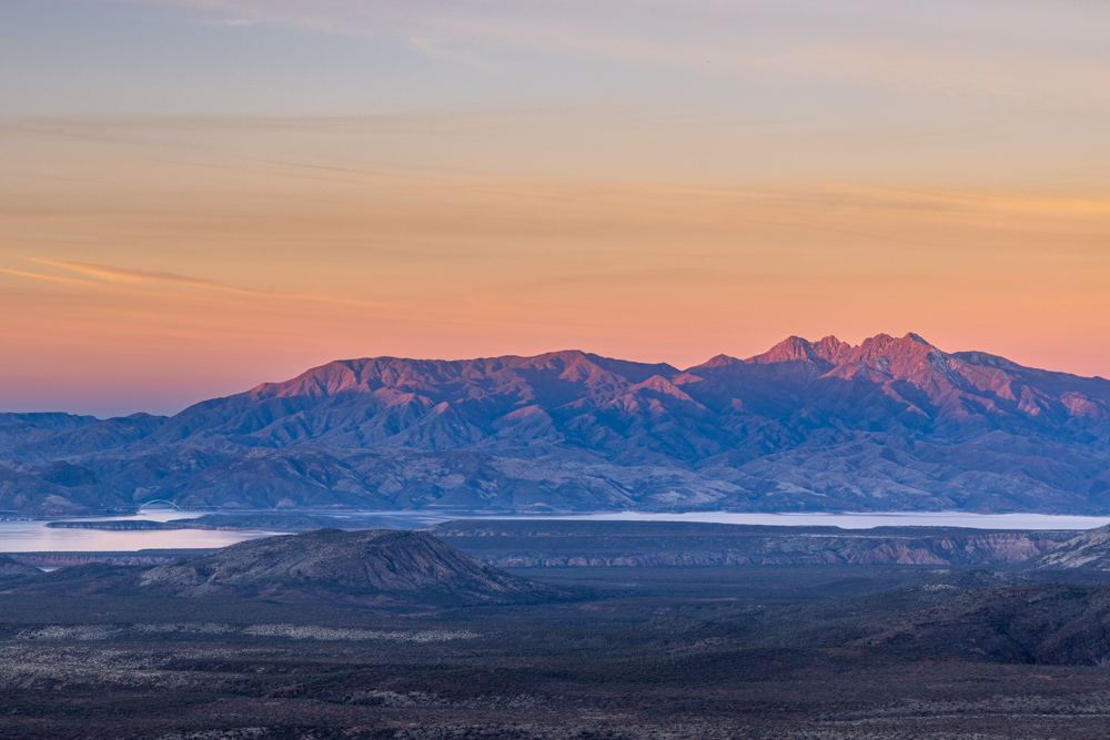 Bridge aross East Clear Creek en route to Mogollon RimDeadman anchors bridge at Sheeps CrossingSycamore Canyon RuinsCar streaks by ruins at Lee’s FerryFllintstone village at Aztec PeakFour Peaks morning glow over Roosevelt Lake bridge.Do tents count: Two tents camp at Aker LakeIf tents count, do paddle boards?: Dogtown Lake